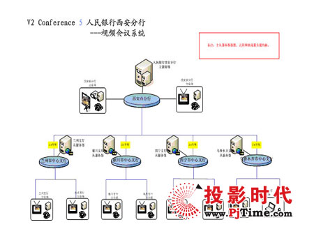 圖例:V2 Conference應用于人民銀行西安分行拓撲圖