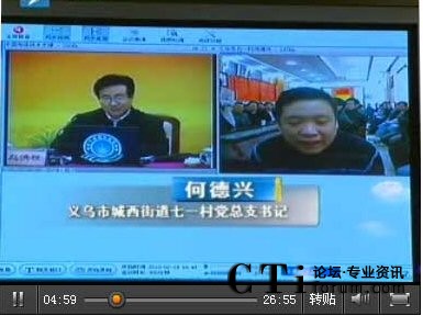 CTI論壇(ctiforum)2月25日消息(記者 潘婷):新春佳節(jié),浙江省委書記趙洪祝通過中國(guó)電信遠(yuǎn)程教育網(wǎng)絡(luò)視頻與部分村支部書記、村官代表進(jìn)行了遠(yuǎn)程互動(dòng),探討農(nóng)村管理的同時(shí)向基層村干部拜年、慰問。