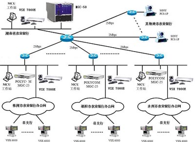 建成后的新湖南省農(nóng)業(yè)銀行視頻會(huì)議系統(tǒng)圖
