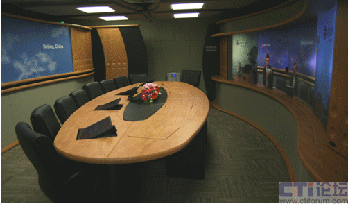 通過采用聲學(xué)處理天花板和吸音墻,“極致遠(yuǎn)真”會(huì)議室的收音效果非常好,有點(diǎn)像錄音棚的感覺,即使是低聲細(xì)語,其他與會(huì)者也能清晰的聽到,這一切從屏幕上人們的表情就可以體會(huì)得到。