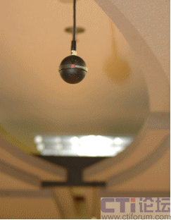 至關(guān)重要的麥克風(fēng)并沒有放在桌子上,而是像小行星一樣巧妙地懸掛于天花,徹底改變了人們對(duì)著麥克風(fēng)發(fā)言的習(xí)慣,讓溝通更趨向于真實(shí)會(huì)議環(huán)境;可別小看這“高高在上”的麥克風(fēng),它的360度全向立體聲拾音能力,震撼了我們?cè)谧拿恳粋(gè)人,寬帶音頻技術(shù)已經(jīng)到了如斯的地步。