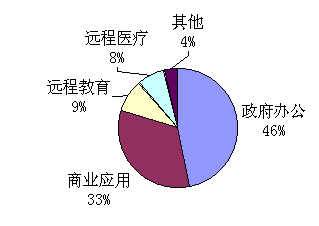 視頻會議系統(tǒng)在我國開始發(fā)展的初期,政府部門及電信、金融、電力、鐵路等壟斷性行業(yè)的應(yīng)用占據(jù)了絕大部分的市場份額。近年來隨著電子政務(wù)工程的逐步推進,政府部門更加關(guān)注視頻會議系統(tǒng)建設(shè)。在經(jīng)濟發(fā)達地區(qū)(例如浙江、山東、廣東),視頻會議網(wǎng)已覆蓋到地市級城市,有的甚至覆蓋到縣一級。除各級政府之外,其它諸如檢察院、法院、公安和水利等職能部門也是視頻會議系統(tǒng)的重要用戶。賽迪網(wǎng)曾對視頻會議系統(tǒng)的應(yīng)用現(xiàn)狀做過調(diào)查,發(fā)現(xiàn)政府辦公占全部市場份額的46.6%,電信、金融、鐵路、電力等行業(yè)占據(jù)了33.2%的市場份額,而遠程教育和遠程醫(yī)療由于尚處于發(fā)展初期,所占份額分別是8.7%和7.9%。