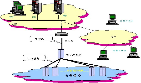 由于N7MS開發(fā)了多種類型的網(wǎng)元通信接口,如X.25,TCP/IP,RS232,加之系統(tǒng)采用分布式的模塊化設(shè)計(jì),因此組網(wǎng)方式非常靈活。 能夠按照信令網(wǎng)絡(luò)和通信網(wǎng)絡(luò)的實(shí)際情況采用不同的組網(wǎng)方案來滿足用戶需要。