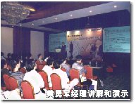 通過兩位演講者深入淺出的講解,看來聆聽者已經(jīng)對文正明的iUnicenter網(wǎng)絡化客戶服務中心的構成、應用有了大致的了解,但與會的證券業(yè)人士關心的不僅是這套解決方案理論上的優(yōu)越,他們更渴望見到實際上的表現(xiàn)如何,于是,文正明公司規(guī)劃發(fā)展部付總經(jīng)理黃勇軍就用一氣呵成的模擬演示給了他們完美的答案。