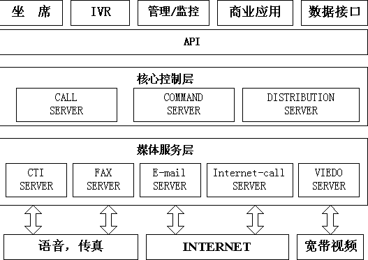 核心控制層用于對來自不同媒介的客戶進(jìn)行識別和路由,幫助企業(yè)最大限度地對每個(gè)連接加以利用,實(shí)現(xiàn)對所有客戶的全面交互管理,能夠?qū)M(jìn)入呼叫中心的語音呼叫、電子郵件、Web聯(lián)系和傳真通信等所有類型的多媒體交互進(jìn)行路由、通告和告警?梢詫Σ煌挠脩、不同的聯(lián)系方式進(jìn)行統(tǒng)一調(diào)度和個(gè)性化處理,并集中進(jìn)行管理、定制和用戶來訪信息的記錄。
