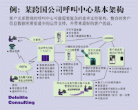 ---- 圖示是一個(gè)由德勤咨詢公司為一全球性客戶提出的呼叫中心建議,呼叫中心經(jīng)常需要這樣復(fù)雜的一個(gè)技術(shù)平臺(tái)和基礎(chǔ)支持才可能實(shí)現(xiàn)快速的來電和去電處理。