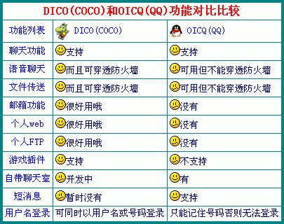 呵呵,前一陣子駕鼠逛網,我發(fā)現(xiàn)了一款類似于時下QQ但比時下QQ還要好用且功能還要多的出色的新型的中文網絡即時通信工具軟件----夢幻尋呼DICO 2002!它集"一般聊天、語音聊天、文件傳送、郵箱功能、個人web/FTP、支持游戲插件、自帶聊天室"等功能于一體且可同時以用戶名或號碼登錄,開辟了網絡通訊軟件的新境界。是由深圳聚才網絡科技發(fā)展有限公司開發(fā)的共享軟件,最近版本是DICO1.11版,適用于Win 9X/NT/2K等操作系統(tǒng),語言界面為全中文界面,下載后的可執(zhí)行文件僅2.55M大小!