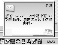 Messenger來說它的郵件功能就更強大了,使用MSN Messenger你必須有一個郵件賬號,每次當您的MSN Messenger登錄成功時,在右下角自動彈出一個窗口,里面寫有該E-mail賬戶內的信件狀況,在使用過程中如果您的郵箱中有了新郵件,馬上會冒出一個提示窗。