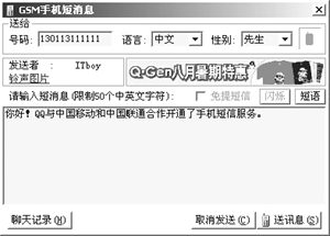 目前IM與各種移動終端設備的結合也越來越多。使用QQ向手機發(fā)送短信需要手機開通移動QQ服務,單擊對方頭像圖標,在打開的快捷菜單中選擇“手機短訊”命令,在打開的對話框中輸入信息,然后點擊發(fā)送即可完成,這時對方的手機就可以收到一個消息。給BP機發(fā)短訊也是一樣,不過對方的BP機服務臺必須是QQ所支持的情況下才行。當對方的手機收到你發(fā)來的短信后還可以回復,這時候您的QQ會彈出“查看手機短訊”的窗口來,非常方便。
