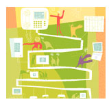 俗話說,多多益善。但是當談到多個網(wǎng)絡(luò)的管理或費用承擔(dān)等問題時,恐怕大多數(shù)人都會同意一個網(wǎng)絡(luò)要比兩個或者三個更為經(jīng)濟有效。這其實是很容易理解的----當數(shù)據(jù),語音和視頻能夠利用同一個網(wǎng)絡(luò)進行傳輸?shù)脑,還有什么必要在每個桌子拖上一大堆電線,讓公司維護三五套網(wǎng)絡(luò)硬件,還要養(yǎng)活好幾組技術(shù)支持隊伍呢?更何況一個綜合性的網(wǎng)絡(luò)還能集中精力為每個用戶提供更好的服務(wù)?于是,IP電話應(yīng)運而生,這種技術(shù)讓很多公司有機會利用現(xiàn)有的網(wǎng)絡(luò)框架贏得更大的利益。