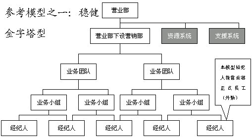 此五種模式建立在營業(yè)部基礎(chǔ)上,在券商總部,建議設(shè)立垂直的業(yè)務(wù)管理機構(gòu),即經(jīng)紀業(yè)務(wù)總部實行事業(yè)部制,下設(shè)分工專業(yè)的市場營銷部、客戶服務(wù)部、經(jīng)紀人訓(xùn)練部和綜合管理部等。