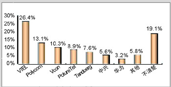各品牌的認(rèn)知度與其市場銷售情況息息相關(guān)。例如,VTEL是最早進(jìn)入中國市場的視頻會(huì)議廠商,并在相當(dāng)長的時(shí)期內(nèi)占據(jù)市場領(lǐng)先地位,取得顯著的品牌認(rèn)知度是有其廣泛用戶基礎(chǔ)作為支撐的;Polycom雖然從1998年才開始進(jìn)軍中國市場,但在基于IP的視頻會(huì)議系統(tǒng)的市場爭奪中取得較好的成績;PictureTel已經(jīng)被Polycom收購,品牌認(rèn)知度也相對(duì)較低;而國內(nèi)品牌中興、華為剛剛起步,也很難達(dá)到較高的認(rèn)知度。