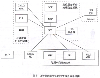 ICP服務(wù)器連接,以獲取地理信息和業(yè)務(wù)信息。SCP將執(zhí)行位置服務(wù)的業(yè)務(wù)邏輯,控制移動(dòng)交換機(jī)(MSC),獨(dú)立外設(shè)(IP),短信中心(SMSC)等網(wǎng)絡(luò)設(shè)備與用戶(hù)交互,實(shí)現(xiàn)位置業(yè)務(wù)。