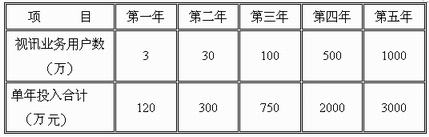 中國網(wǎng)通CNC視訊運(yùn)營網(wǎng)絡(luò)在建網(wǎng)成本上主要考慮四個(gè)部分。一是視訊交換平臺MCU部分,主要用于多點(diǎn)視頻通信;二是視訊運(yùn)營支撐系統(tǒng),包括各種運(yùn)營所必須的軟件(網(wǎng)管、業(yè)務(wù)受理中心、業(yè)務(wù)管理中心)及相應(yīng)的硬件服務(wù)器;三是 H.323 視訊系統(tǒng)的關(guān)鍵組件GK軟件及相應(yīng)硬件服務(wù)器,其容量和個(gè)人視頻通信業(yè)務(wù)的發(fā)展情況息息相關(guān);四是投入資金利息。具體可細(xì)分如下:
