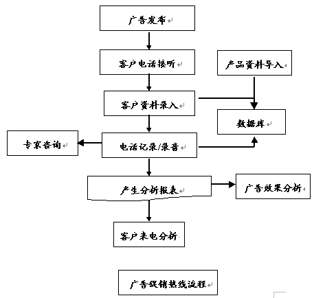 廣告熱線是在呼叫中心系統(tǒng)中設(shè)立專欄,為廣告中的產(chǎn)品或服務(wù)提供更詳細的資料。首先應(yīng)將需要在廣告中出現(xiàn)的詳細內(nèi)容或不適合在廣告中出現(xiàn)的內(nèi)容按照要求導(dǎo)入呼叫中心系統(tǒng),準備就緒后,就在媒體或其他介質(zhì)上做廣告,其中廣告的內(nèi)容中含廣告熱線號碼。電話號碼建議采用800電話,以提高客戶撥打電話的積極性。呼叫中心會記錄打進的每一個電話,并且提供完成的系統(tǒng)報表。這樣可以彌補廣告中提供給消費者內(nèi)容不足的缺陷,另一方面可以根據(jù)電話量判斷廣告的效果。