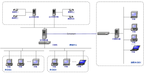 下屬各單位辦公區(qū)的工作終端或遠(yuǎn)程(Internet)終端,可以連接到中心機(jī)房的轉(zhuǎn)播服務(wù)器上進(jìn)行接收數(shù)據(jù)。用戶只需直接打開IE瀏覽器然后輸入轉(zhuǎn)播服務(wù)器的IP地址或者相關(guān)鏈接,進(jìn)入到正在直播的會議現(xiàn)場,實(shí)現(xiàn)遠(yuǎn)程實(shí)時(shí)參與會議的目的。