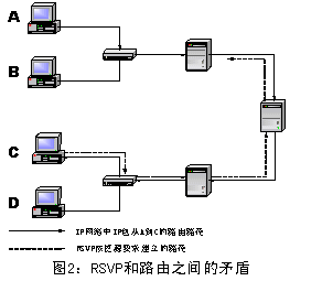 RSVP中引入每流狀態(tài)(per-flow state)的概念,對(duì)于數(shù)據(jù)通信和實(shí)時(shí)應(yīng)用通信而言,IP網(wǎng)絡(luò)同時(shí)扮演了面向無(wú)連接和面向連接網(wǎng)絡(luò)的兩個(gè)不同角色,提供兩種功能,這與其簡(jiǎn)化設(shè)計(jì)原則相抵觸。