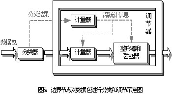 從功能上,調(diào)節(jié)器可分為計(jì)量器(meter)、標(biāo)記器(marker)、整形器(sharper)和丟包器(dropper)。