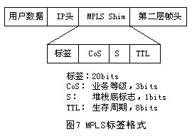 標(biāo)簽的格式取決于分組封裝所在的介質(zhì)。例如,ATM封裝的分組(信元)采用VPI和/或VCI數(shù)值作為標(biāo)簽,而幀中繼PDU采用DLCI作為標(biāo)簽。對(duì)于那些沒(méi)有內(nèi)在標(biāo)簽結(jié)構(gòu)的介質(zhì)封裝,則采用一個(gè)特殊的數(shù)值填充。圖7給出4字節(jié)填充標(biāo)簽的格式,它包含一個(gè)20bits的標(biāo)簽值、一個(gè)3bits的CoS值、一個(gè)1bit的堆棧標(biāo)識(shí)符和一個(gè)8bits的TTL值。此外.如果填充值被插入到一個(gè)PPP或以太網(wǎng)幀中,包含在各幀頭中的一個(gè)協(xié)議ID(或以太網(wǎng)類(lèi)型)表示一個(gè)幀或者一個(gè)