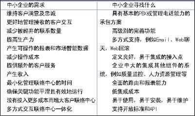 當(dāng)中小企業(yè)從“非正式”轉(zhuǎn)向“正式”客戶(hù)中心操作時(shí),他們需要與大型企業(yè)相同的客戶(hù)中心能力。對(duì)于這些企業(yè),合適的解決方案必須要解決一個(gè)重要的業(yè)務(wù)問(wèn)題,例如以易于客戶(hù)聯(lián)絡(luò)的各種方式交流,使其成為真正的客戶(hù)中心。也許更重要的是,實(shí)現(xiàn)成本必須處于控制之下且管理良好。中小企業(yè)期望的是功能完善的客戶(hù)聯(lián)絡(luò)中心,但是價(jià)格必須能夠承擔(dān)得起,低花費(fèi),低培訓(xùn)成本,短期內(nèi)即可實(shí)現(xiàn)。
