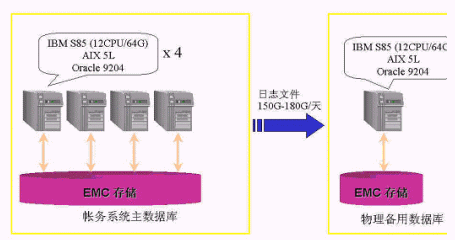 在這里簡(jiǎn)單介紹一個(gè)某省移動(dòng)公司帳務(wù)系統(tǒng)采用Oracle Data Guard物理備用數(shù)據(jù)庫(kù)的情況(見圖5)。