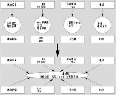 典型的大企業(yè),其電話會(huì)議,視頻會(huì)議以及網(wǎng)絡(luò)與數(shù)據(jù)會(huì)議通常是相互獨(dú)立的系統(tǒng)。UCC可以實(shí)現(xiàn)各種通信平臺(tái)的協(xié)同工作,員工只需使用一個(gè)通用界面便可調(diào)用多種終端設(shè)備。它將視頻會(huì)議、音頻會(huì)議、短消息以及網(wǎng)絡(luò)接入結(jié)合在一起。還能結(jié)合IP電話功能,如狀態(tài)信息功能等。本專題專門(mén)介紹了業(yè)界較為成功的幾種融合視頻概念和產(chǎn)品。