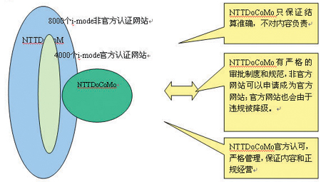 要解決上述問(wèn)題需要一個(gè)系統(tǒng)化的進(jìn)程,我們可以借鑒NTT DoCoMo的i-mode的管理模式,如圖5所示,這種管理模式的核心思路是將SP分成官方和非官方分別管理,并建立升降級(jí)制度,鼓勵(lì)SP升級(jí)。這樣做的好處是:1.明確運(yùn)營(yíng)商與SP的關(guān)系;2. 明確用戶投訴的對(duì)象;3. 降低SP進(jìn)入門(mén)檻,鼓勵(lì)SP開(kāi)發(fā)業(yè)務(wù)。