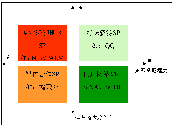 通過(guò)提供網(wǎng)絡(luò)服務(wù)產(chǎn)生強(qiáng)大流量帶動(dòng)無(wú)線(xiàn)業(yè)務(wù)發(fā)展,業(yè)務(wù)收入主要來(lái)源網(wǎng)站推廣,產(chǎn)品常圍繞自有網(wǎng)絡(luò)內(nèi)容策劃、主要收入來(lái)自圖鈴、社區(qū)等網(wǎng)絡(luò)特點(diǎn)鮮明的業(yè)務(wù):搜狐、新浪、網(wǎng)易、TOM;