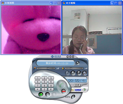 在1M中國(guó)電信ADSL的網(wǎng)絡(luò)接入之下,如果網(wǎng)絡(luò)還在應(yīng)付下載等占用網(wǎng)絡(luò)帶寬的操作時(shí),“寶視通”的可視效果會(huì)出現(xiàn)“馬賽克”現(xiàn)象,顯示速度并不理想,但慶幸的是語(yǔ)音速度并沒(méi)有受到多大的影像,通話雙方依然能清楚聽(tīng)到對(duì)方的音頻。