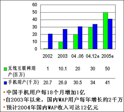 有數(shù)據(jù)顯示,國內WAP用戶自2003年來以每年2000萬的速度遞增,預計2005年末將有望達到5000萬,接近國內Internet用戶總數(shù)的一半。WAP雖然是一個充滿了機會的市場,但國內現(xiàn)有的WAP站點資源很難滿足WAP用戶的需求也是事實。劉斌認為,2005年將是對WAP非常關鍵的一年,在這一年里,WAP搜索將有望成為WAP平臺上的“殺手級應用”,并最終催熟國內各種相關的WAP應用。當然,這有一個前提,那就是中文WAP網(wǎng)絡資源必須在今年得到極大豐富。