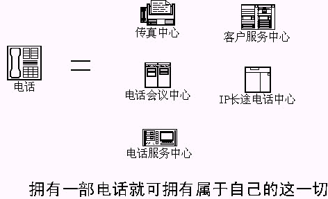 該方法的實施,可以讓每一個電話和強大的CTI系統(tǒng)聯(lián)系,一部電話將變成語音系統(tǒng)、傳真系統(tǒng)、電話會議系統(tǒng)、……。擁有這一切用戶只需要支付呼叫轉(zhuǎn)移的費用。可以設想,以后開辦公司,只要申請電話,擁有ADSL上網(wǎng)的電腦,用戶在辦公室、在家,打開電腦,單擊進入自己的語音系統(tǒng)、會議系統(tǒng),宣傳公司,召開會議,發(fā)送傳真。公司擁有、使用自己的、電信級的CTI系統(tǒng);所有CTI應用系統(tǒng)的開發(fā),語音部分完全由電話接入服務商提供,……。