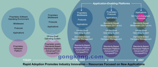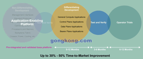 摩托羅拉將這種預集成并驗證的基礎平臺稱之為面向應用的平臺,采用這個方式可以極大的加快進入市場的速度,使TEM專注于開發(fā)自己產品的差異化功能與內容。基于標準的平臺同時具有豐富的核心能力,從硬件,OS到高可用中間件與管理接口,它不是為單一應用而設計,而是為廣闊市場準備的通用平臺。