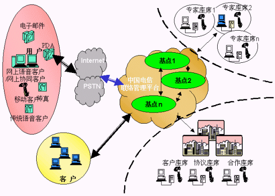 電信運營商提供的用戶、客戶、電信公司的統(tǒng)一的聯(lián)系平臺,各類客戶通過使用聯(lián)系平臺,向其用戶提供方便的、不受時間、地域和媒體的限制的"3A"級聯(lián)絡(luò)服務,用戶、客戶、電信平臺間的聯(lián)絡(luò)能得到有效路由、管理、品質(zhì)保障;聯(lián)絡(luò)中心通過將分布在各地、各種媒體、各種形式的資源整合在一起實現(xiàn)客戶服務增值,創(chuàng)造無限商機,有效提升客戶聯(lián)絡(luò)中心的價值,使用戶得到最貼身的、個性化的、專業(yè)的服務,為客戶提供成本更低、資源更豐富、服務更專業(yè)、具備強大商業(yè)智能的產(chǎn)品營銷及服務、電信運營商則開發(fā)大量的增值服務、產(chǎn)生更多的利潤增長空間、更多忠實的客戶,實現(xiàn)三方面共同成功。