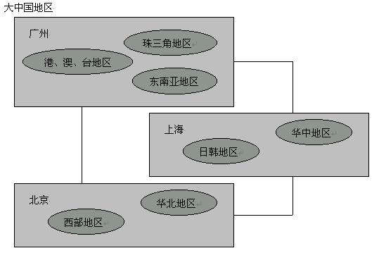 建設(shè)單點外包呼叫中心需要具備良好的地域服務功能,并應該是政治、商業(yè)中心,有較強的服務需求,例如:長江三角洲的服務可選擇上海建設(shè)第一個基點中心,珠江三角洲可選擇廣州為第一基點中心,華北可選擇北京為第一基點中心。如下圖示意: