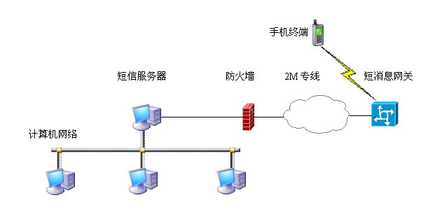 考慮到對安全性的要求,可以通過一條2M數(shù)據(jù)專線直接連接短信網(wǎng)關(guān),可使傳輸網(wǎng)絡(luò)不經(jīng)過因特網(wǎng),從而大大提高數(shù)據(jù)傳輸?shù)姆(wěn)定性、可靠性和應(yīng)用系統(tǒng)的安全性。