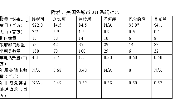 附表1 美國(guó)各城市311系統(tǒng)對(duì)比