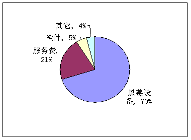 加拿大RIM公司是最早推出移動PushE-mail業(yè)務(wù)的企業(yè),黑莓業(yè)務(wù)主要是以該公司為核心,也是目前最成功的移動PushE-mail業(yè)務(wù)。該公司幾乎控制著圍繞黑莓業(yè)務(wù)的所有產(chǎn)品,包括終端、服務(wù)器、客戶端軟件、解決方案等,并且吸引了一批獨立軟件公司開發(fā)基于黑莓的各種軟件產(chǎn)品,如即時通信軟件、移動營銷軟件、移動CRM軟件等,RIM公司向這些軟件開發(fā)公司收取專利費用。另外,在業(yè)務(wù)方面,由于RIM公司控制NOC的運維,因此運營商還需要向RIM公司支付服務(wù)費。圖2為RIM公司2006財年業(yè)務(wù)收入結(jié)構(gòu)。