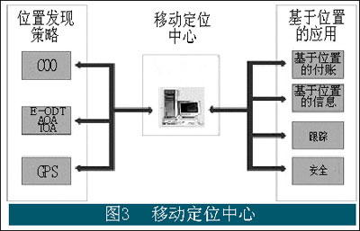 盡管基于位置信息的業(yè)務(wù)和應(yīng)用有著巨大的市場潛力,但是一些移動網(wǎng)絡(luò)運(yùn)營商在面對如此多的技術(shù)時(shí),偶爾會感到困惑。為了迅速地開展業(yè)務(wù)而不用過多地糾纏在技術(shù)層面上,圖3所示的方案得到了推介。在該方案中,移動位置定位中心將定位技術(shù)的選擇和業(yè)務(wù)應(yīng)用的選擇有效地隔離起來。由于COO的精確度已經(jīng)可以為許多應(yīng)用提供位置信息的支持,這樣移動網(wǎng)絡(luò)運(yùn)營商可以先采用綜合代價(jià)最小的技術(shù)去拓展業(yè)務(wù),而在以后逐漸地采用一些先進(jìn)的定位技術(shù)。