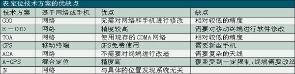 基于移動終端的定位技術(shù)包括全球定位系統(tǒng)——GPS、基于移動終端信號發(fā)送和接收的時(shí)戳或角度的技術(shù)——E-OTD(增強(qiáng)觀測時(shí)間差分)/TOA(到達(dá)時(shí)間),以及來源蜂窩小區(qū)——COO技術(shù)(還有所謂的輔助GPS—A-GPS技術(shù)作為對COO技術(shù)的補(bǔ)充)。