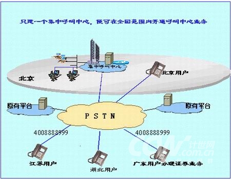 例如,大鵬證券原在部分省市有呼叫中心平臺,用于當(dāng)?shù)仉娫挼慕尤。為了降低企業(yè)運(yùn)營成本和拓展業(yè)務(wù)覆蓋范圍,大鵬證券計劃繼續(xù)采用呼叫中心方式為客戶提供服務(wù)。經(jīng)過對電話網(wǎng)、IP網(wǎng)等多種接入方式的比較分析,最終確定采用中國電信"一碼通"業(yè)務(wù)。