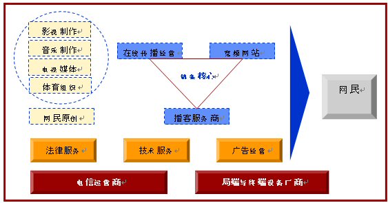 對于互聯(lián)網(wǎng)來講,網(wǎng)絡(luò)視頻代表網(wǎng)絡(luò)內(nèi)容展現(xiàn)形式的變革,而這種變革將帶動(dòng)一個(gè)產(chǎn)業(yè)鏈條的發(fā)展,同時(shí)產(chǎn)業(yè)鏈條各個(gè)環(huán)節(jié)也會(huì)反過來制約網(wǎng)絡(luò)視頻的發(fā)展。2006年以前的中國網(wǎng)絡(luò)視頻發(fā)展處于一個(gè)初級(jí)階段,聚集網(wǎng)民注意力,形成網(wǎng)民對網(wǎng)絡(luò)視頻內(nèi)容的瀏覽習(xí)慣是這個(gè)階段網(wǎng)絡(luò)視頻發(fā)展的核心。但是因?yàn)樯虡I(yè)模式的不成熟,網(wǎng)絡(luò)視頻盈利能力弱的基本原因,產(chǎn)業(yè)鏈條中的多個(gè)環(huán)節(jié)都成了抑制網(wǎng)絡(luò)視頻發(fā)展的因素。例如:寬頻形式對網(wǎng)絡(luò)資源的要求一方面加大了寬頻內(nèi)容運(yùn)營的成本,另一方面對網(wǎng)民終端的網(wǎng)絡(luò)條件要求也明顯高于以前的網(wǎng)絡(luò)條件,而這些問題要求電信運(yùn)營商既要降低基礎(chǔ)網(wǎng)絡(luò)資源的價(jià)格又要提高網(wǎng)絡(luò)資源的質(zhì)量,這些工作和讓步短時(shí)間內(nèi)電信運(yùn)營商很難完成,寬頻內(nèi)容運(yùn)營商的運(yùn)營成本就保持居高不下而網(wǎng)民的網(wǎng)絡(luò)視頻效果就差強(qiáng)人意了。像這樣充滿著矛盾因素的抑制環(huán)節(jié)在整個(gè)產(chǎn)業(yè)鏈條中還有很多,因此2006年以前的中國網(wǎng)絡(luò)視頻發(fā)展沒有突破產(chǎn)業(yè)束縛進(jìn)入發(fā)展的快車道。