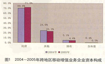 電信市場的開放吸引了大量中小企業(yè),而他們進(jìn)入的領(lǐng)域也大多集中在增值服務(wù)市場。目前,中國的電信增值服務(wù)市場的各類中小企業(yè)已達(dá)到上萬家,業(yè)務(wù)范圍幾乎涉及全部增值領(lǐng)域,成為通信經(jīng)營服務(wù)業(yè)務(wù)的重要組成部分。在1.4萬家電信增值企業(yè)中,民營企業(yè)比例占到55.37%,民營資本已經(jīng)成為該市場的主體。