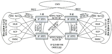 綜上所述,建議IP信令網(wǎng)應(yīng)該采用分層結(jié)構(gòu)。對(duì)于省際的MAP、CAP信令采用GT尋址方式,IP STP提供GTT功能;對(duì)于省內(nèi)的MAP、CAP信令采用目的地信令點(diǎn)編碼尋址方式,初期可以采用直聯(lián)方式,通過(guò)IP STP轉(zhuǎn)接的準(zhǔn)直聯(lián)作為備用路由。省內(nèi)、省際BICC信令通過(guò)TMSC Server或CMN轉(zhuǎn)接。