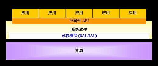 從應(yīng)用的角度來看,中間件API位于應(yīng)用層和系統(tǒng)軟件層之間,由系統(tǒng)軟件層提供一套獨(dú)立的API給應(yīng)用層調(diào)用。