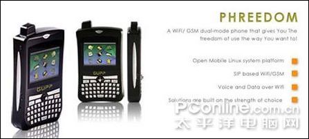 很多技術(shù)分析人士都認為,VoWiFi的下一波功能將主要集中在雙模手機上,即手機擁有Wi-Fi IP電話功能和普通蜂窩電話功能。當(dāng)用戶位于家中、辦公室或公共Wi-Fi熱點區(qū)域,可以使用Wi-Fi IP電話功能進行通話,而在沒有Wi-Fi網(wǎng)絡(luò)的地區(qū),則可以使用傳統(tǒng)的蜂窩網(wǎng)絡(luò)進行通話。不論采用哪種網(wǎng)絡(luò),用戶的手機號碼是唯一的。由于通過Wi-Fi網(wǎng)絡(luò)撥打IP電話的費用要低于現(xiàn)有的固定電話,因此未來這種電話很可能會取代大部分用戶目前使用的固定電話。下圖為GUPP公司最新推出的VoWiFi/GSM雙模Linux智能手機PHREEDOM