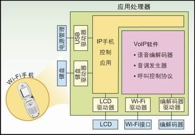 在這些設(shè)計中,一般的人機界面(MMI)以及VoIP通話控制功能使用傳統(tǒng)的應(yīng)用處理器(ARM、MIPS等),而DSP則用于語音到數(shù)據(jù)包到語音的轉(zhuǎn)換。此方法在便攜設(shè)備的設(shè)計中暴露出很多缺點。
