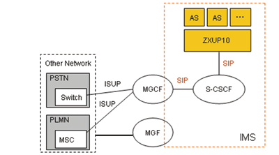 如圖3所示,在這種接入方式中,ZXUP10通過ISC接口與S-CSCF交互,其它網(wǎng)絡如PSTN、PLMN通過MGCF與IMS互通,與ZXUP10平臺無直接交互關系。