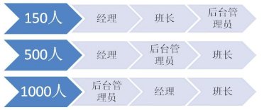 當員工人數(shù)到達500人的時候,班長往往有30位左右。很多經(jīng)理已經(jīng)不能夠?qū)γ课话嚅L有足夠的了解,更不要說去認識大部分員工。這個時候,經(jīng)理對班長的比例過寬,需要強化后臺管理員的角色。比如排班、績效、質(zhì)量管理(而不僅是評估)、信息分析(數(shù)據(jù)和報告)、行政、培訓(xùn)等工作中,這些管理輔助角色都在逐漸強化。而每一個后臺管理者可能成了經(jīng)理的直接下屬,他們起草的流程和制度,來由經(jīng)理決策。某種程度上說,他們比班長的影響力更大,因為班長還是影響著12-20人。有時候后臺管理員也決定了班長的時間精力分配,那是班長最寶貴的資源。那么誰是管理者呢?首先是經(jīng)理,其次是后臺管理員,最后才是班長。