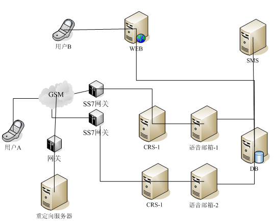 DB數(shù)據(jù)庫服務(wù)器:用于保存用戶數(shù)據(jù),彩鈴文件,呼叫記錄等