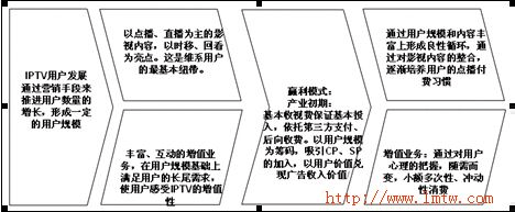 IPTV產(chǎn)業(yè)的發(fā)展,前期是通過其中的特殊功能來吸引用戶,如時(shí)移等,但之后,真正能吸引用戶的其中的某項(xiàng)業(yè)務(wù)。這在IPTV的宣傳策略上需要重視。